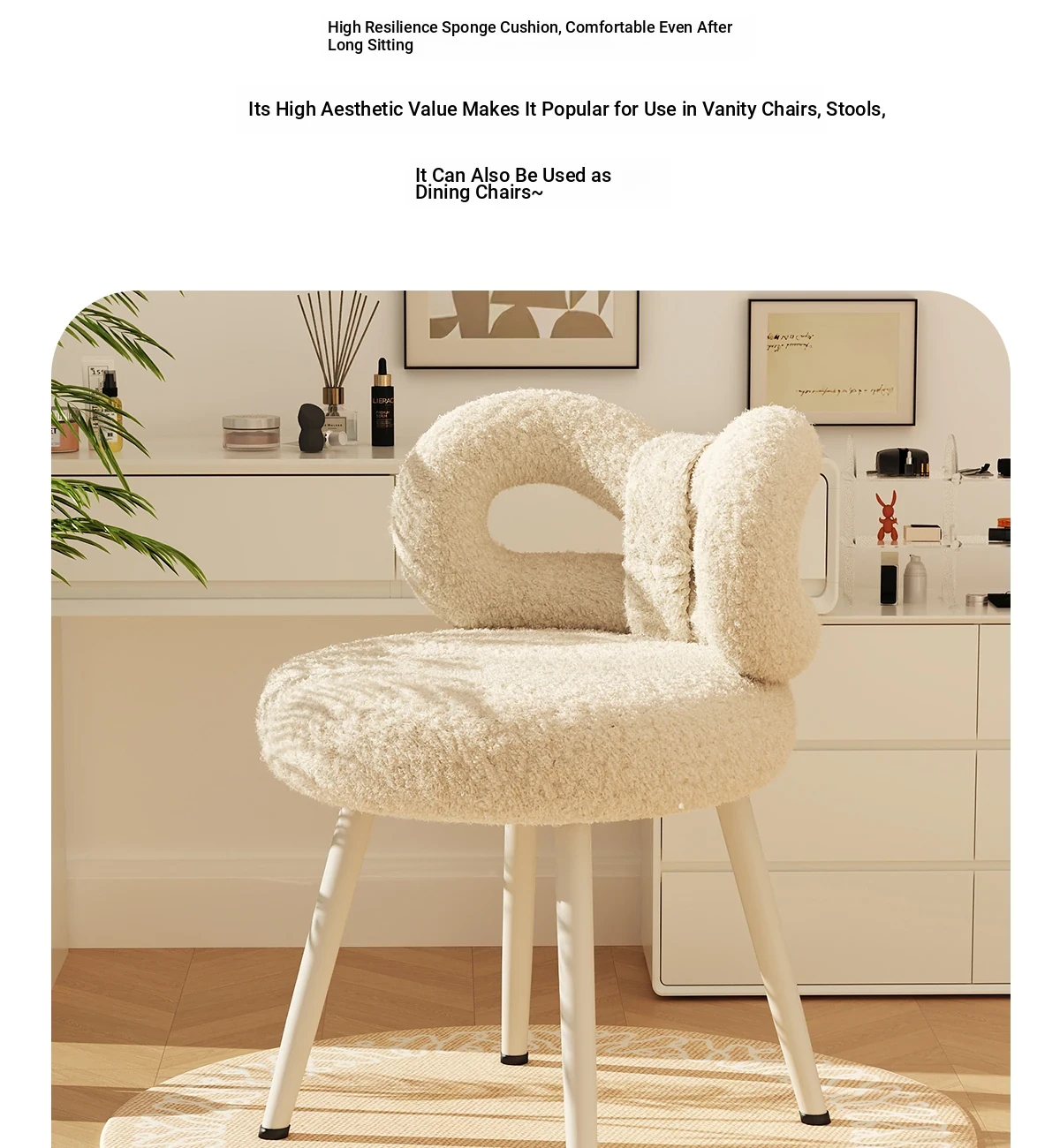 Modern Minimalist Makeup Chair for Girls' Bedrooms – Chic Vanity Stool, Dining Chair, and Luxury Nail Salon Seat, Perfect for Influencers and Beauty Enthusiasts.