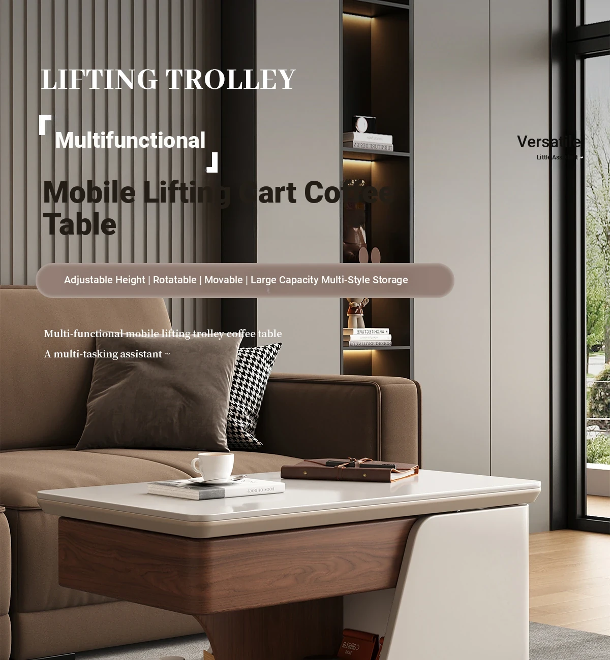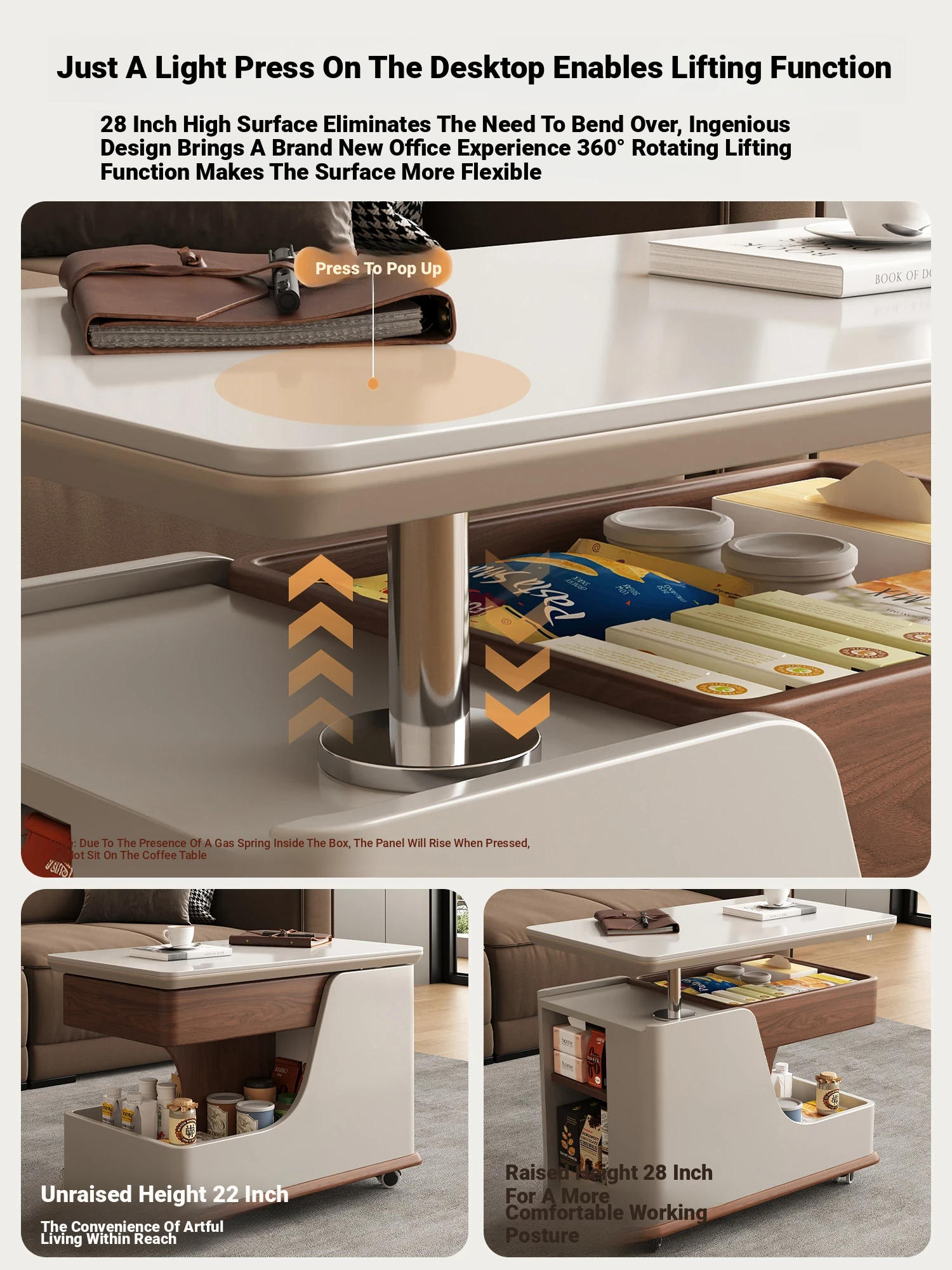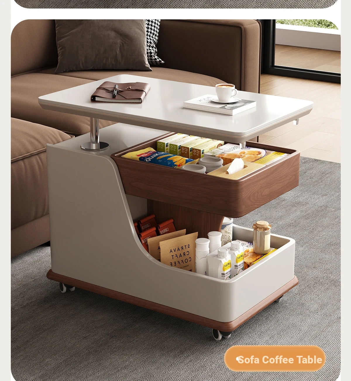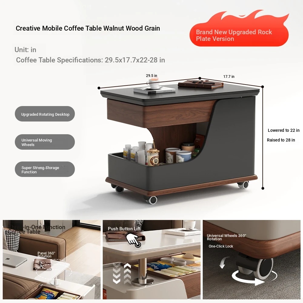 Versatile Mobile Coffee Table with Lift-Top for Living Room - Stylish Sofa Side Cart and Nightstand with Rock Plate Design, Perfect for Storage and Display