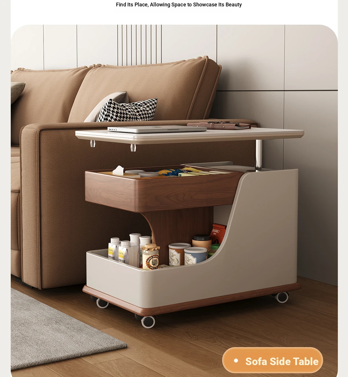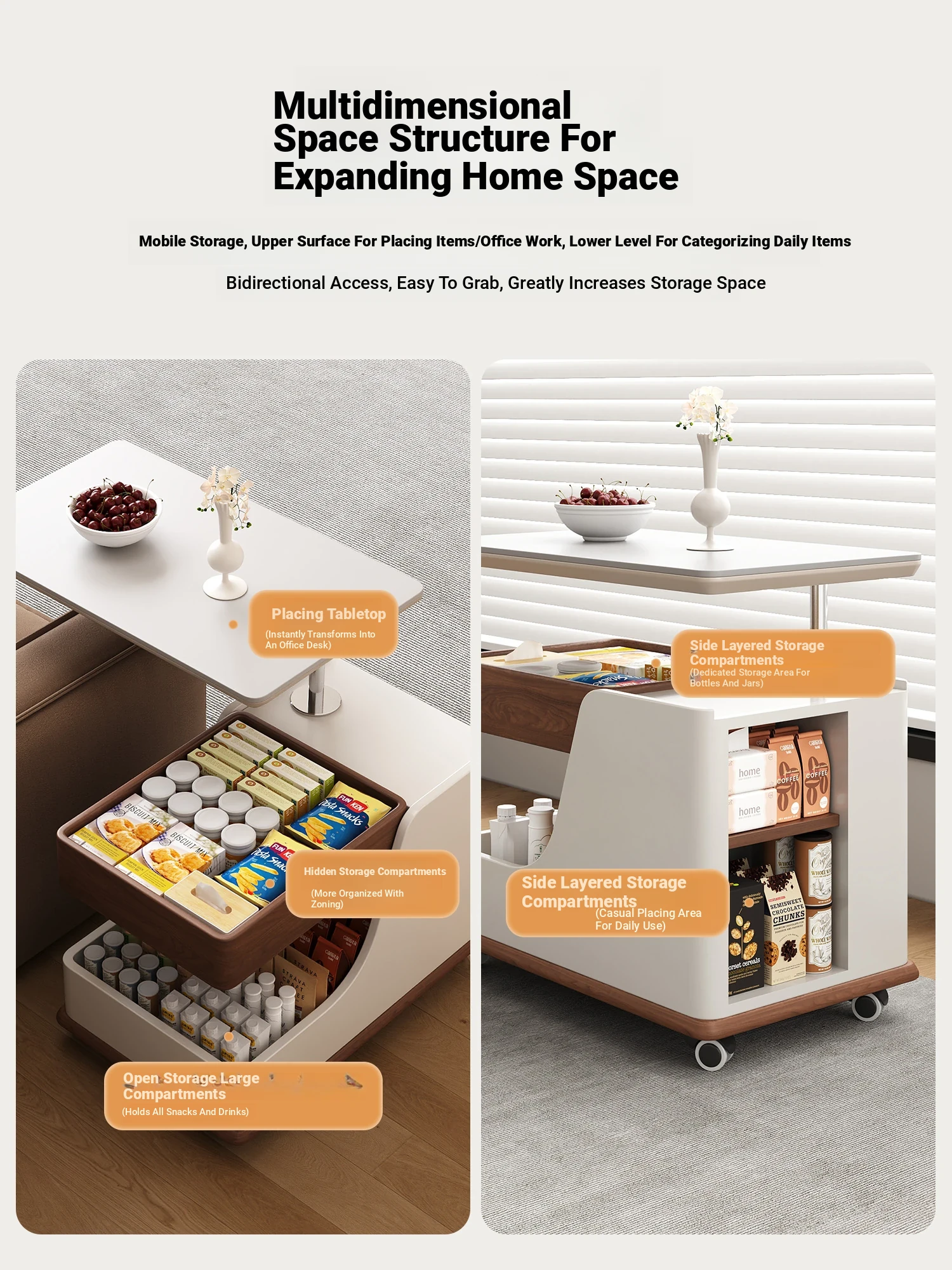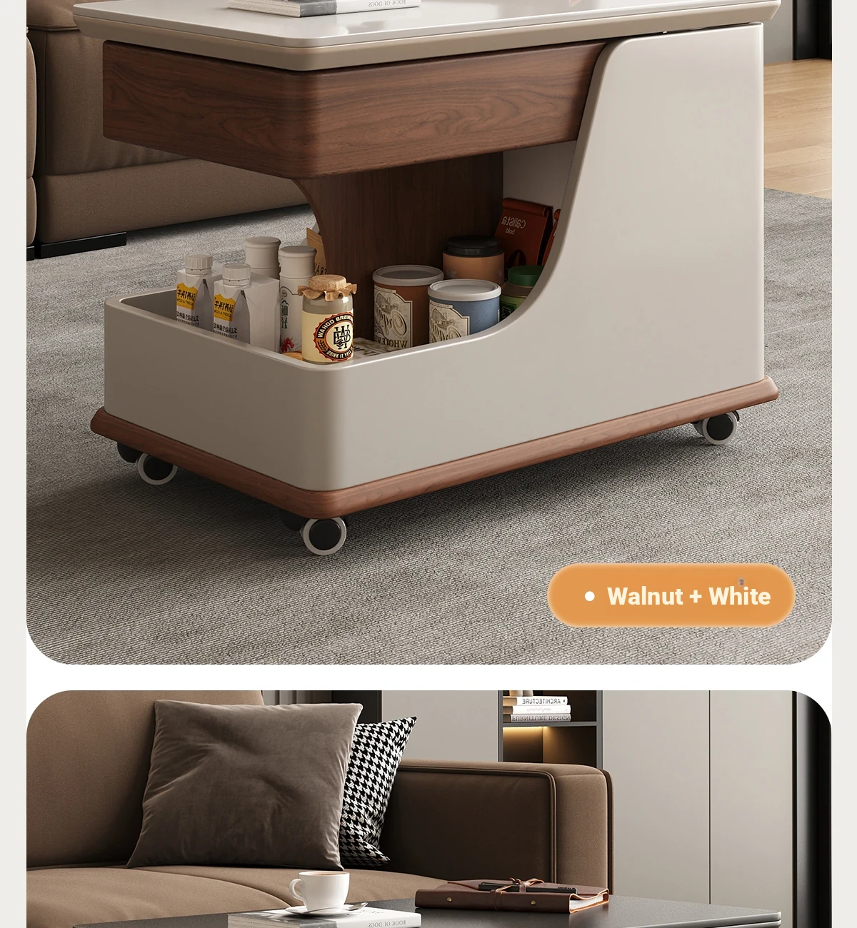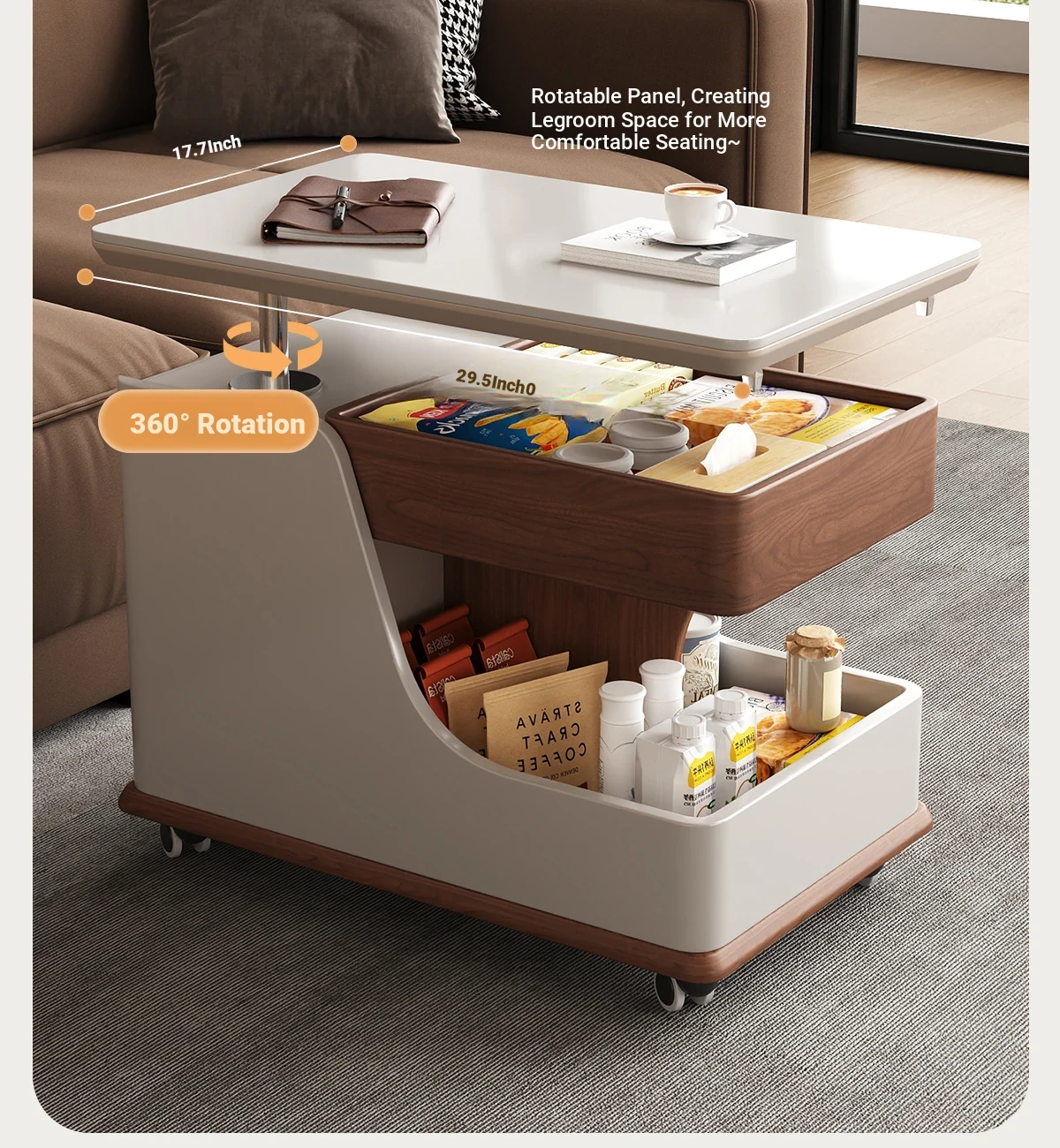Versatile Mobile Coffee Table with Lift-Top for Living Room - Stylish Sofa Side Cart and Nightstand with Rock Plate Design, Perfect for Storage and Display