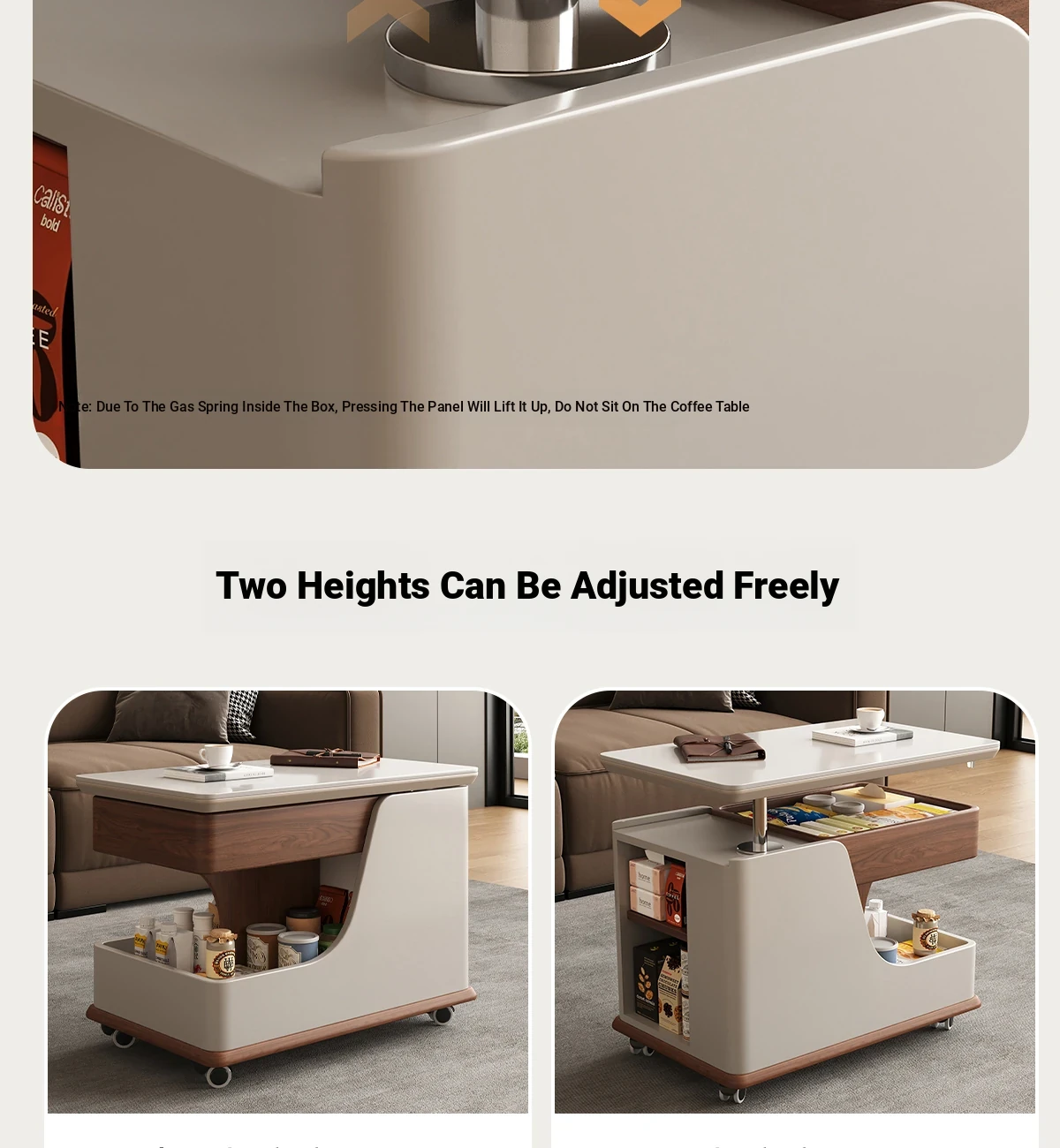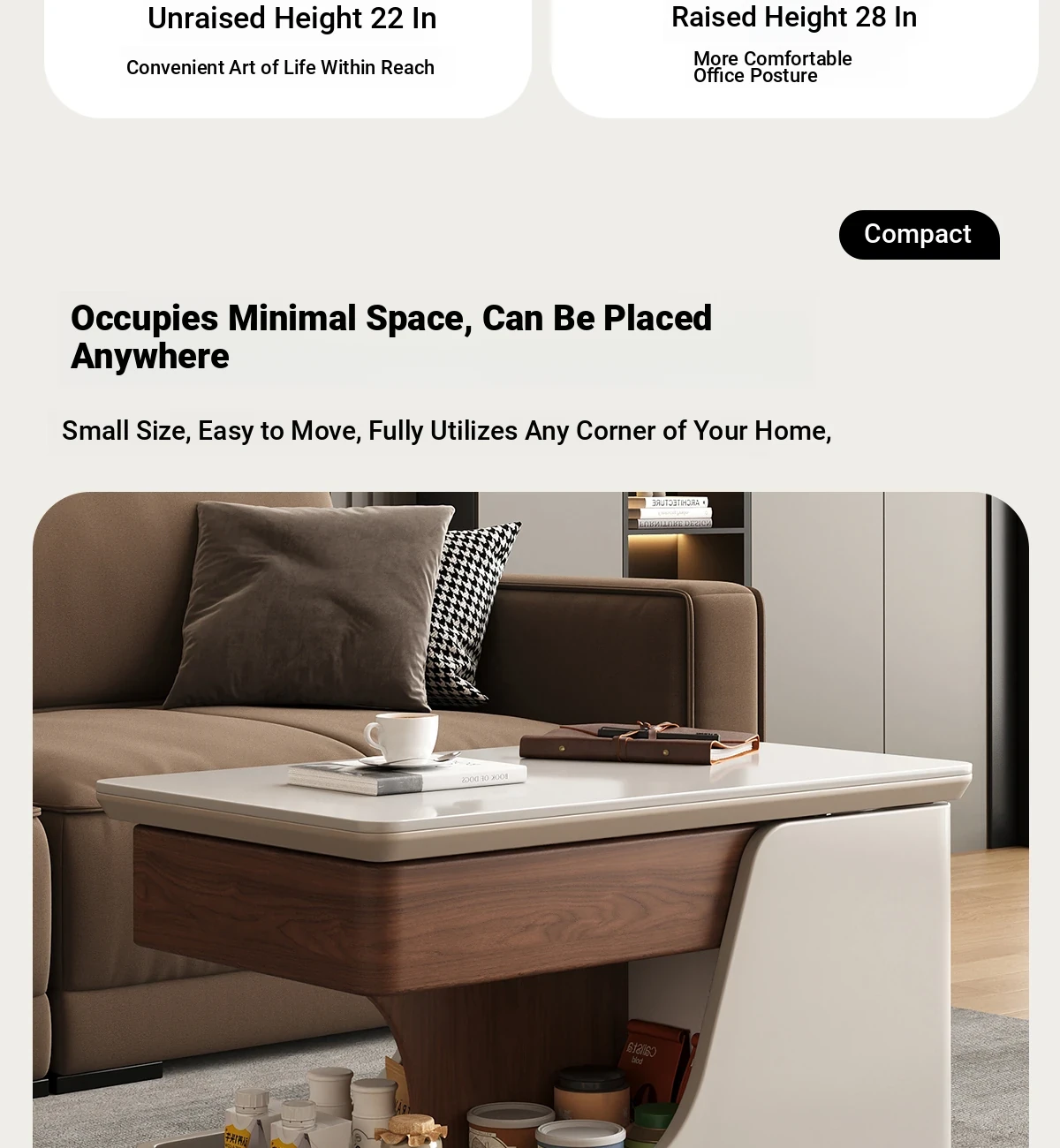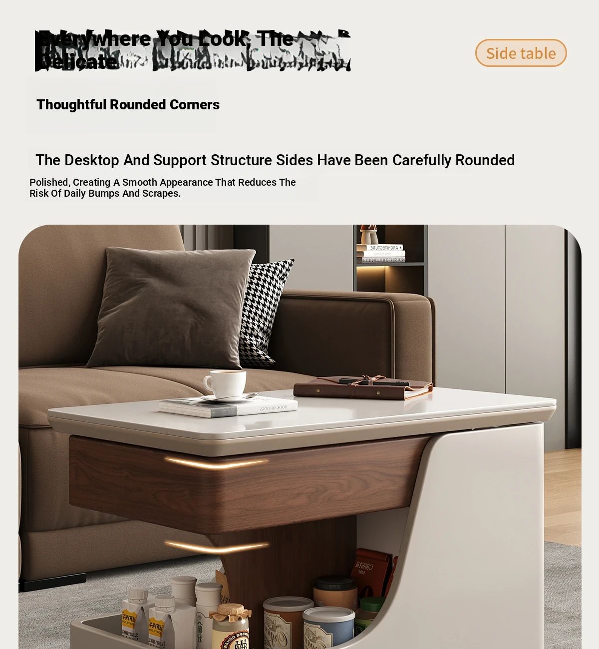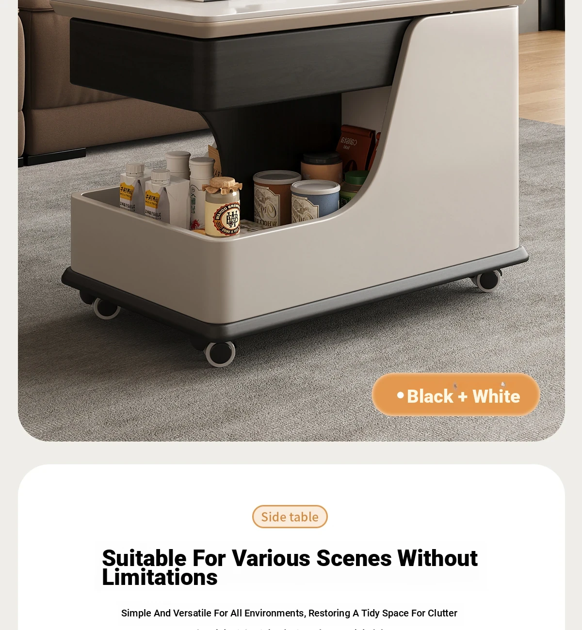 Versatile Mobile Coffee Table with Lift-Top for Living Room - Stylish Sofa Side Cart and Nightstand with Rock Plate Design, Perfect for Storage and Display