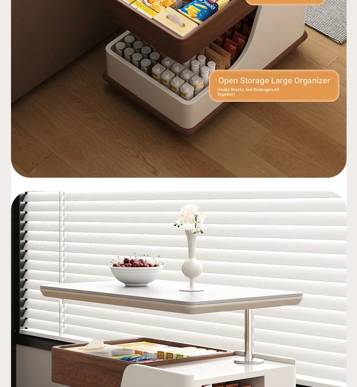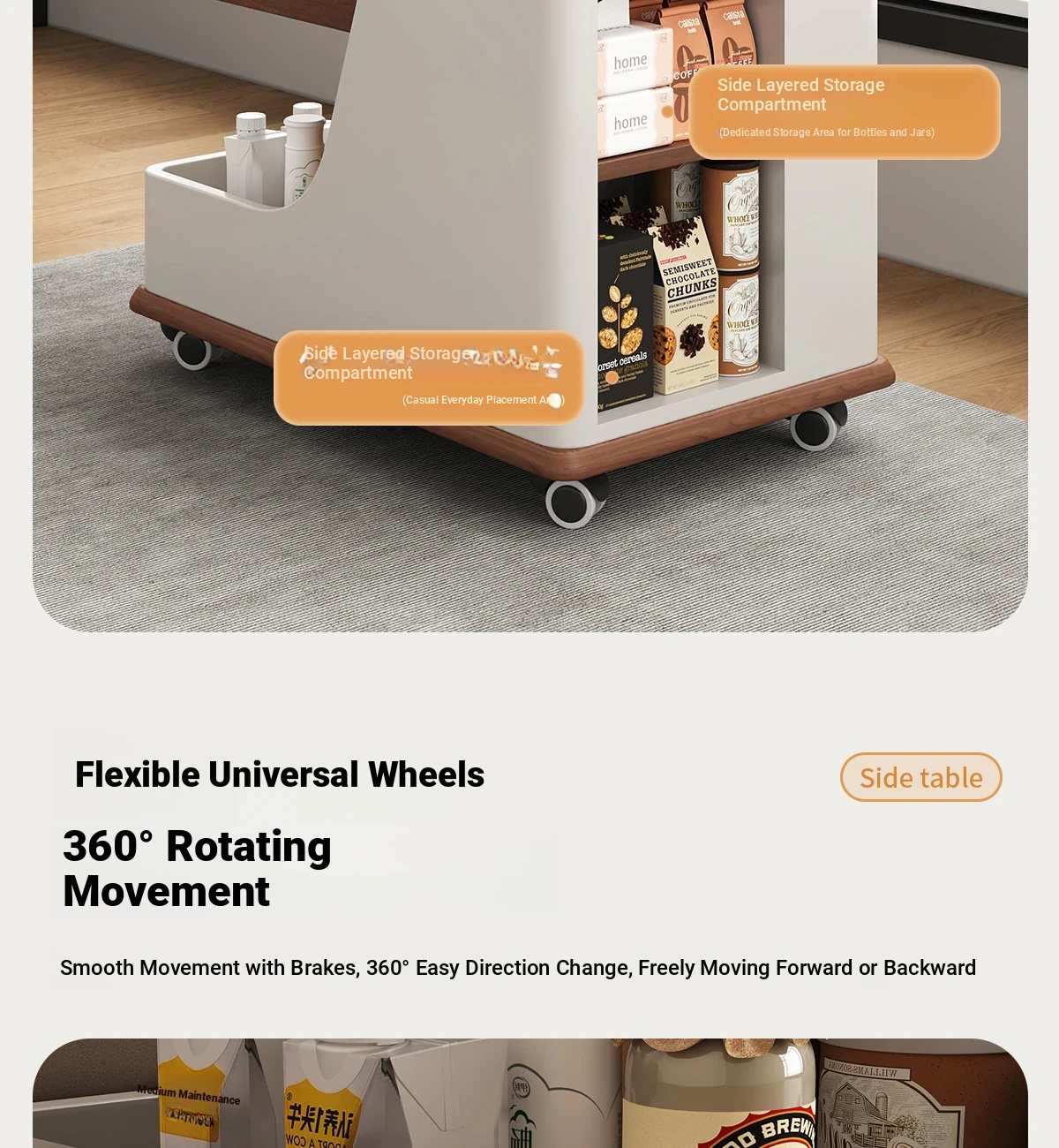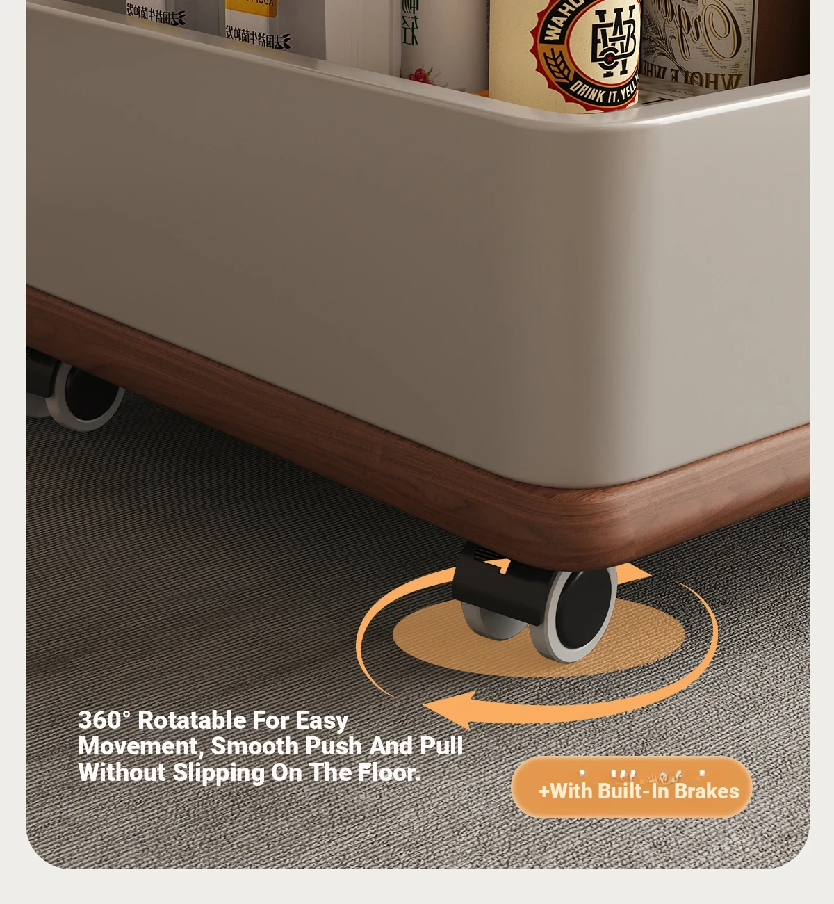 [White + Walnut Color] Movable Adjustable Cart Side Few [Full Pack Delivery to Home]]