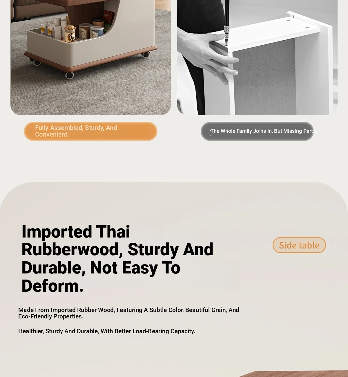 [Black + Walnut Color] Movable Adjustable Cart Side Few [Full Pack Delivery to Home]]