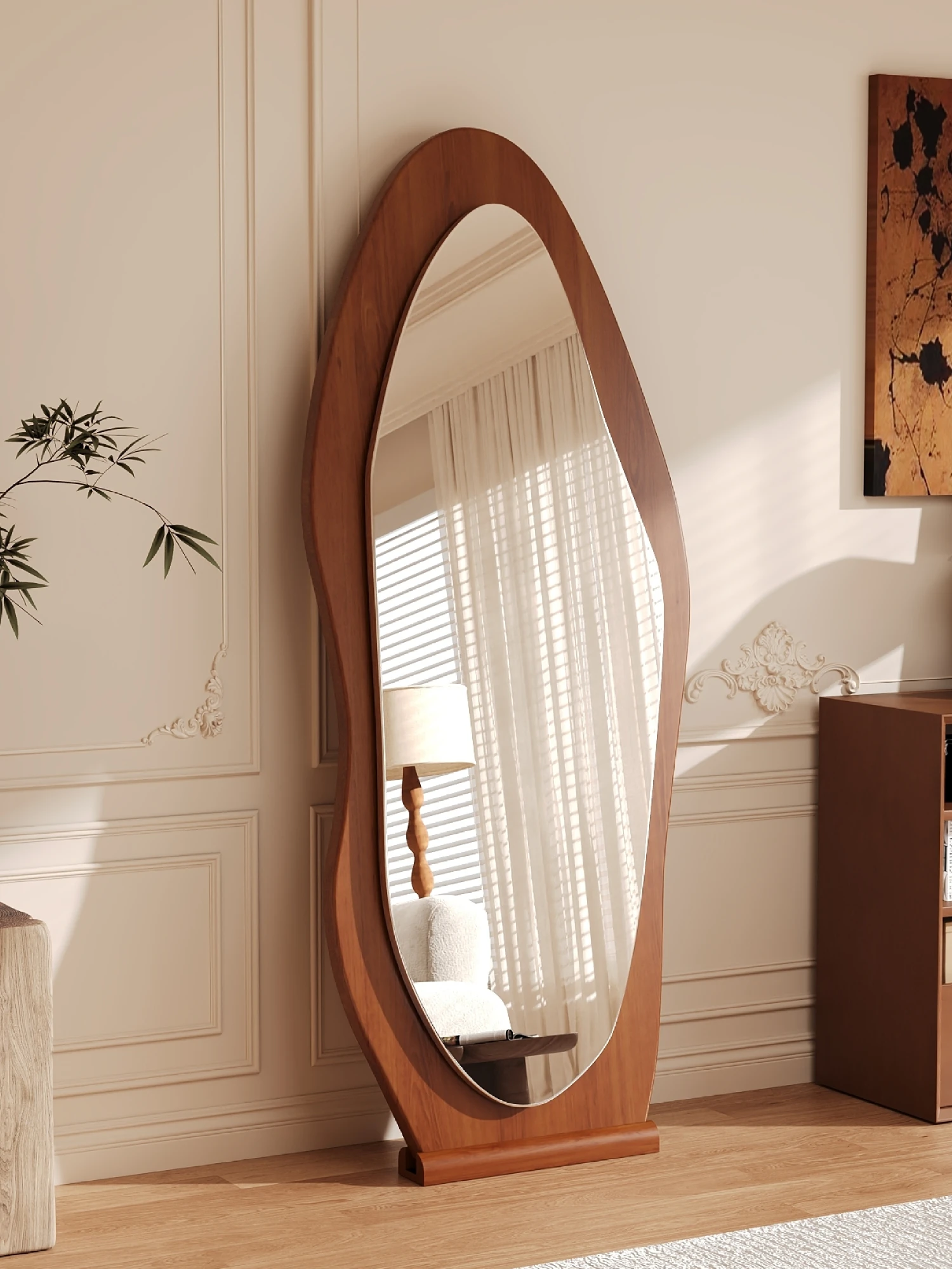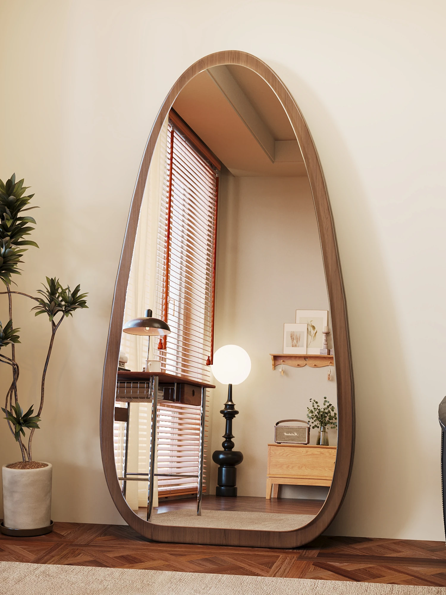 Elegant Full-Length Floor Mirror - Stylish and Versatile Dressing Mirror for Home Use, Perfect for Bedrooms. Unique Shape, Trendy Wall-Mounted Option, Ideal for Fashion Enthusiasts!