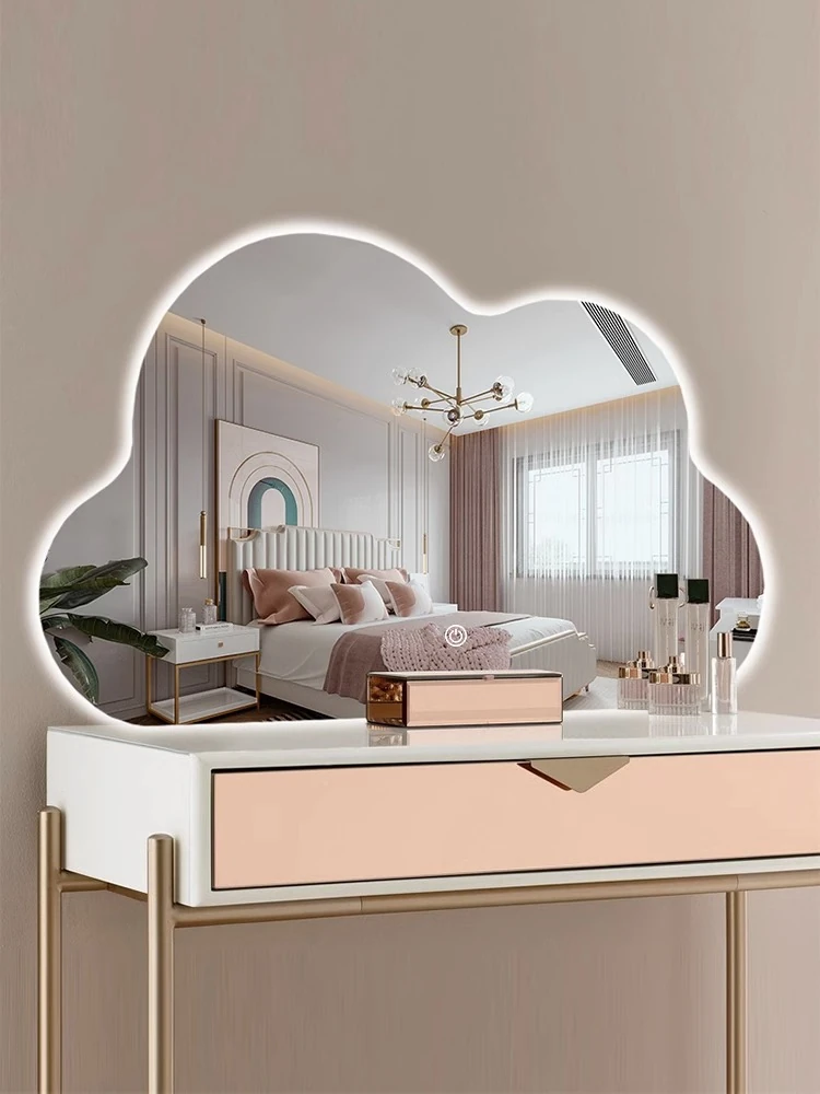 Smart Cloud Makeup Mirror with LED Light - Desktop Vanity Mirror for Girls, Wall-Mounted Dressing Table Mirror for Bedroom, Large Size for Perfect Grooming