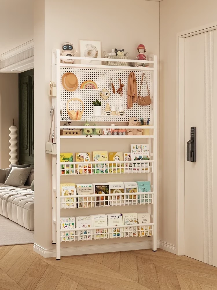 Slim Wall-Mounted Storage Shelf for Kids' Books - Ultra-Thin Pegboard Organizer for Entryway, Multi-Layer Narrow Cabinet for Efficient Space Saving, Perfect for Home Decor and Children's Room!