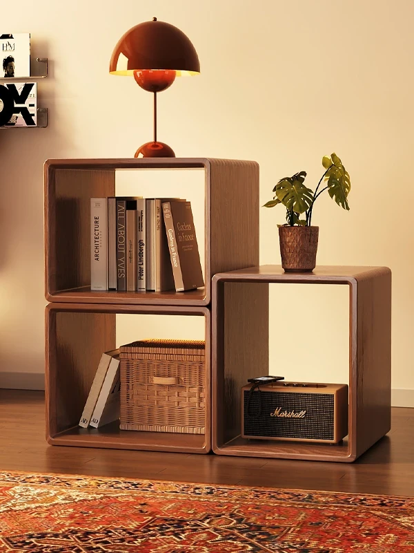 Solid Wood Grid Shelf - Floor-standing Storage Unit for Living Room, Window Sill Organizer, Versatile Modular Bookshelf with Stylish Design for Easy Customization and Efficient Storage.