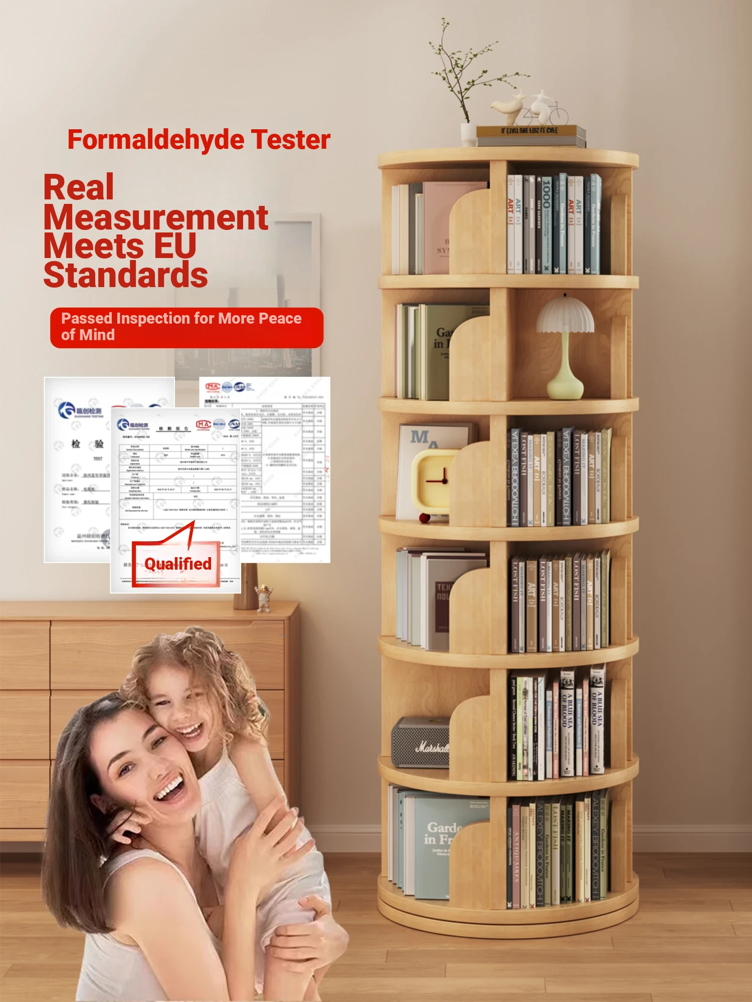 Solid Wood Bookshelf - Multi-Layer Rotating Floor Storage Rack for Home and Study - Easy-to-Use Children's Book Cabinet, 360° Swivel Design for Convenient Access and Stylish Organization