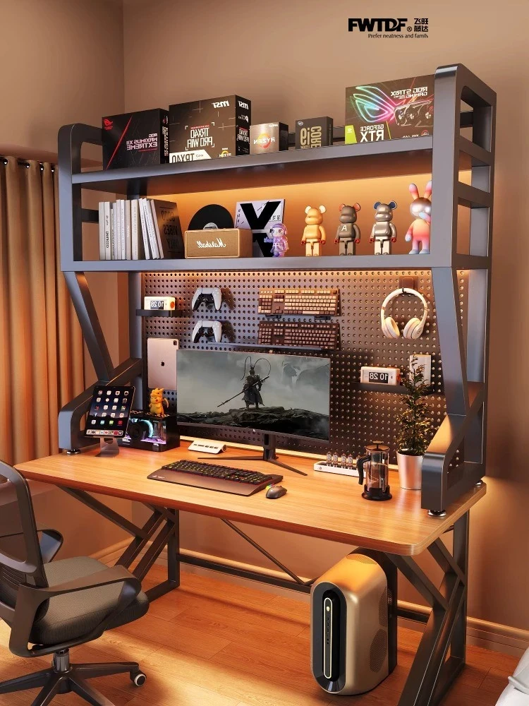 Multifunctional Desktop Organizer - Multi-Layer Iron Bookshelf for Office & Study - Ideal for Student Desks, Computer Stations, and Creative Storage Solutions with Pegboard Design
