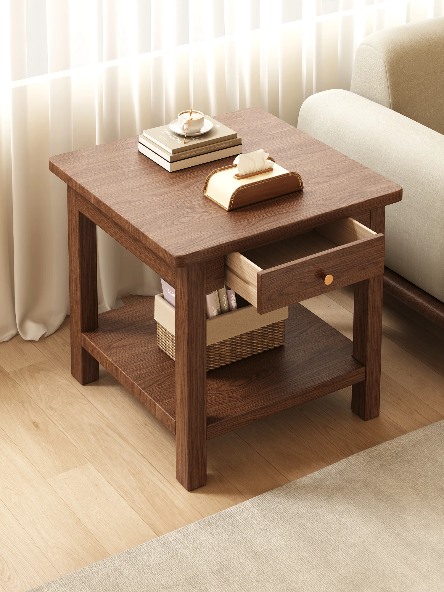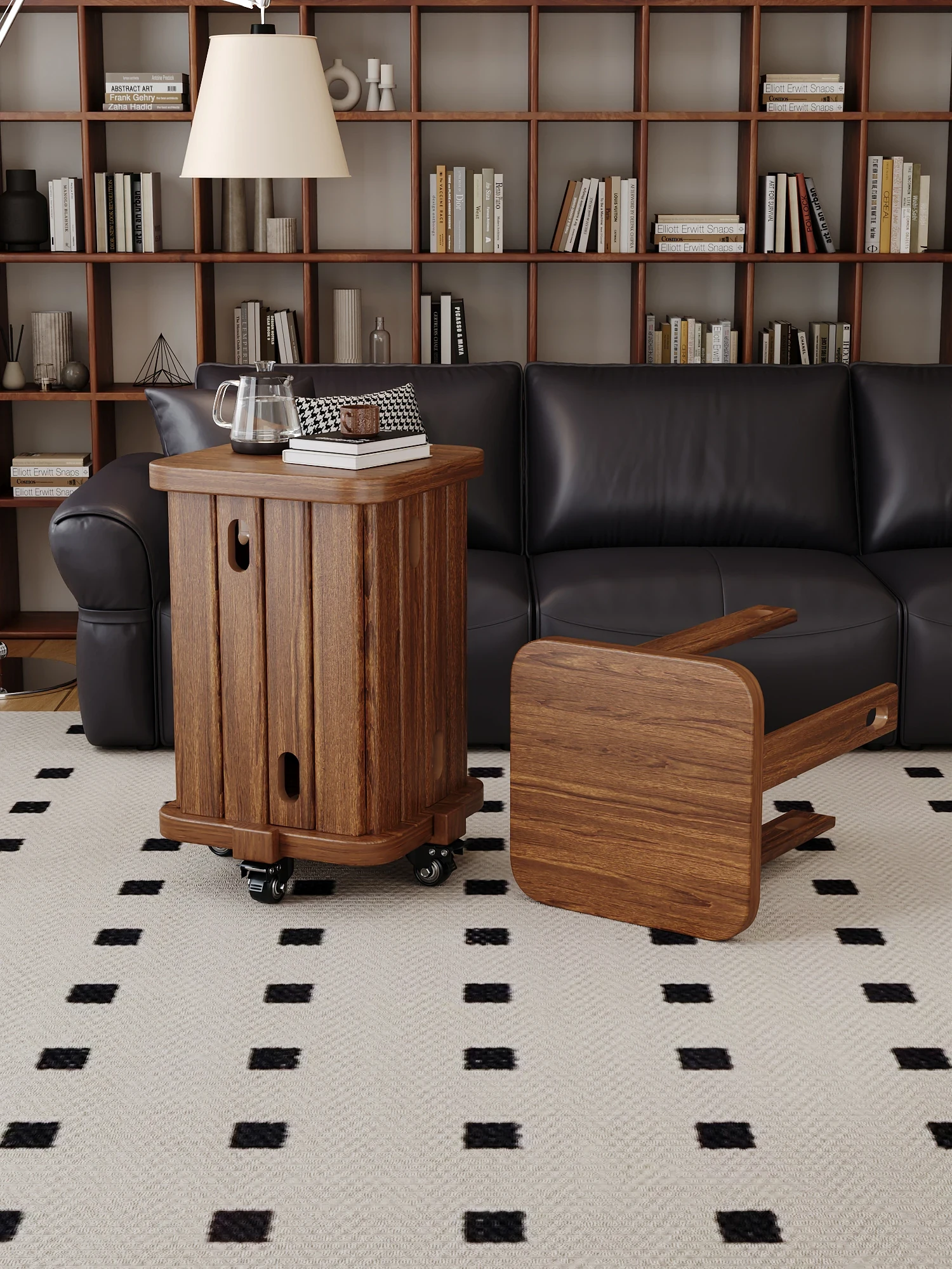 中華風リビングにぴったり!創造的でミニマルなデザインの無垢材サイドテーブル。おしゃれな茶卓やコーナーキャビネットとしても使える、機能的で美しい一品!