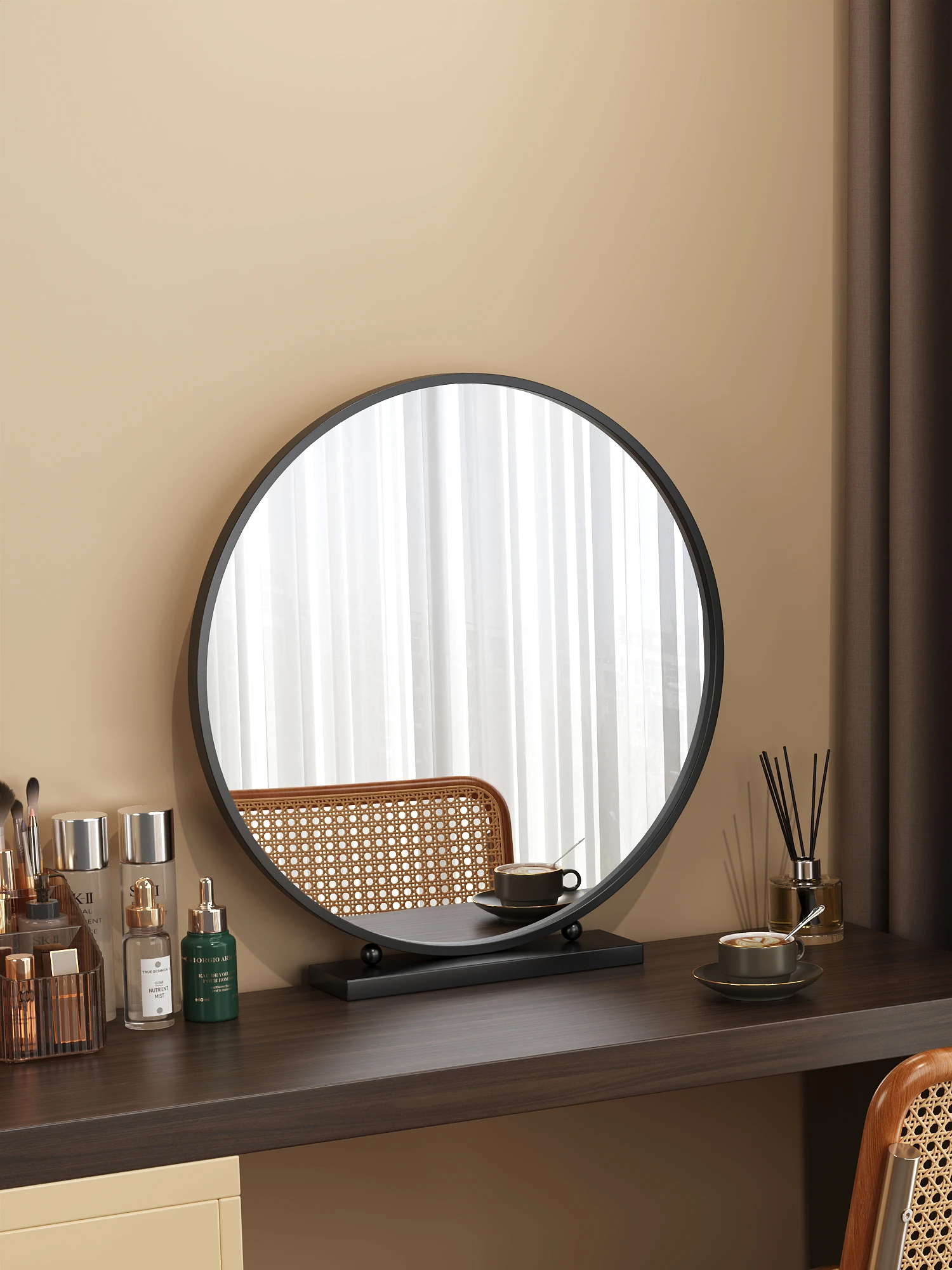 高精細なLEDライト付き化粧鏡 – 洗練されたデスクトップ用鏡、スマート機能搭載、寝室やドレッサーに最適な大きな円形デザインで、美しさを引き立てる!