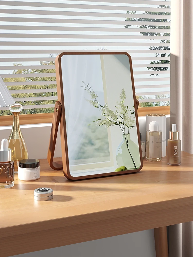 シンプルなデザインの木製折りたたみ化粧鏡 - 大型デスクトップミラー、女性向け、寝室に最適、持ち運び便利!自宅での美容タイムを贅沢に演出します。