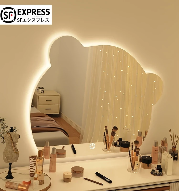 LEDスマート化粧鏡 - 明るさ調整可能な壁掛けメイクミラー!おしゃれなデザインで、女性の寝室や化粧台にぴったり。美肌補正機能付きで、完璧なメイクをサポートします。あなたのビューティータイムをさらに特別に!