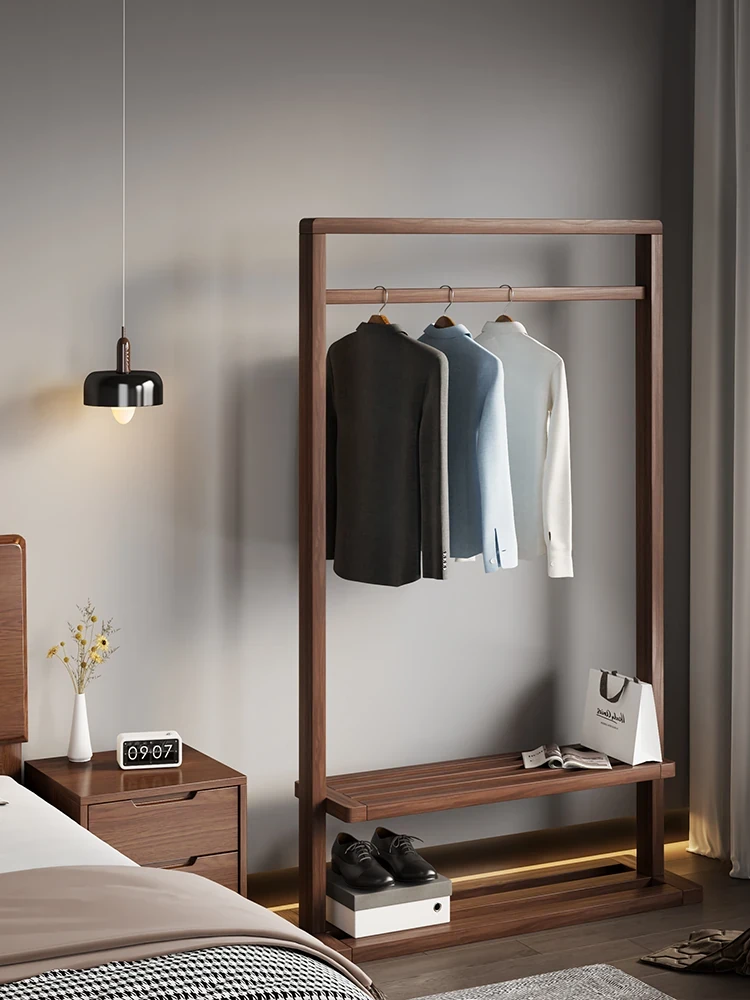 ウォールナット製のスタンド型衣類ハンガー - 移動可能なクローゼットラック、家庭用の軽奢なブラス収納スタンド、新しい中華スタイルのコートハンガーでおしゃれな空間を演出!