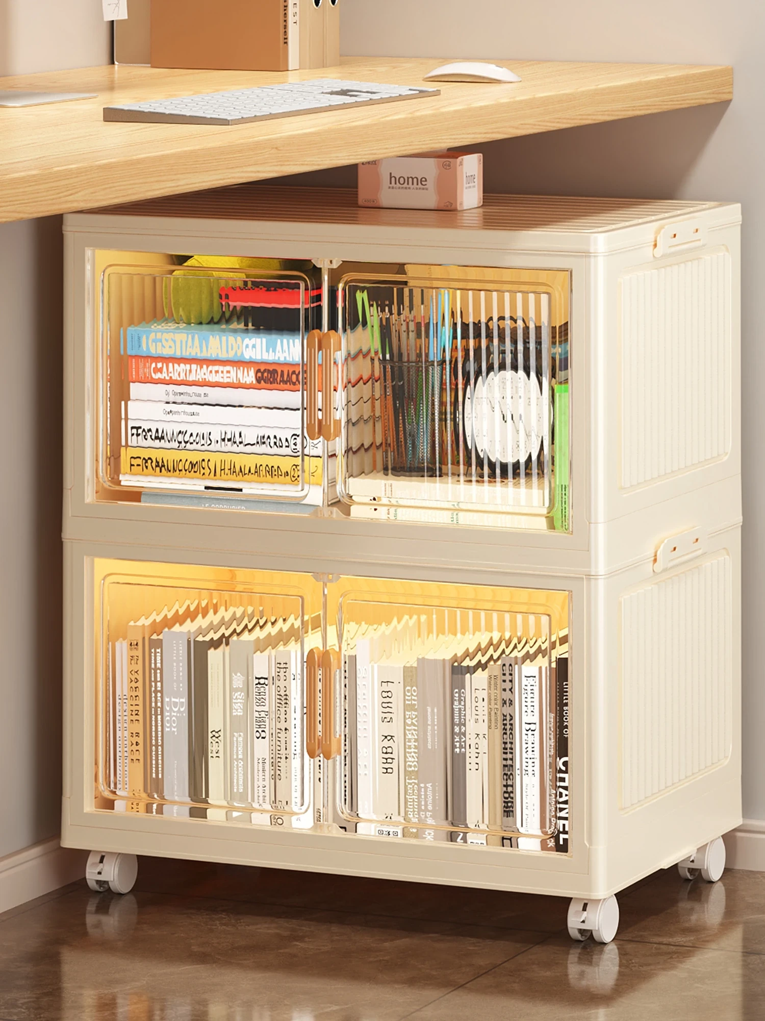 学生寮にぴったり!移動式ブックシェルフ - デスク下収納キャビネット、ホコリから守る!家庭用・子供のお菓子やおもちゃのための多段ラックで、スッキリ整理整頓!