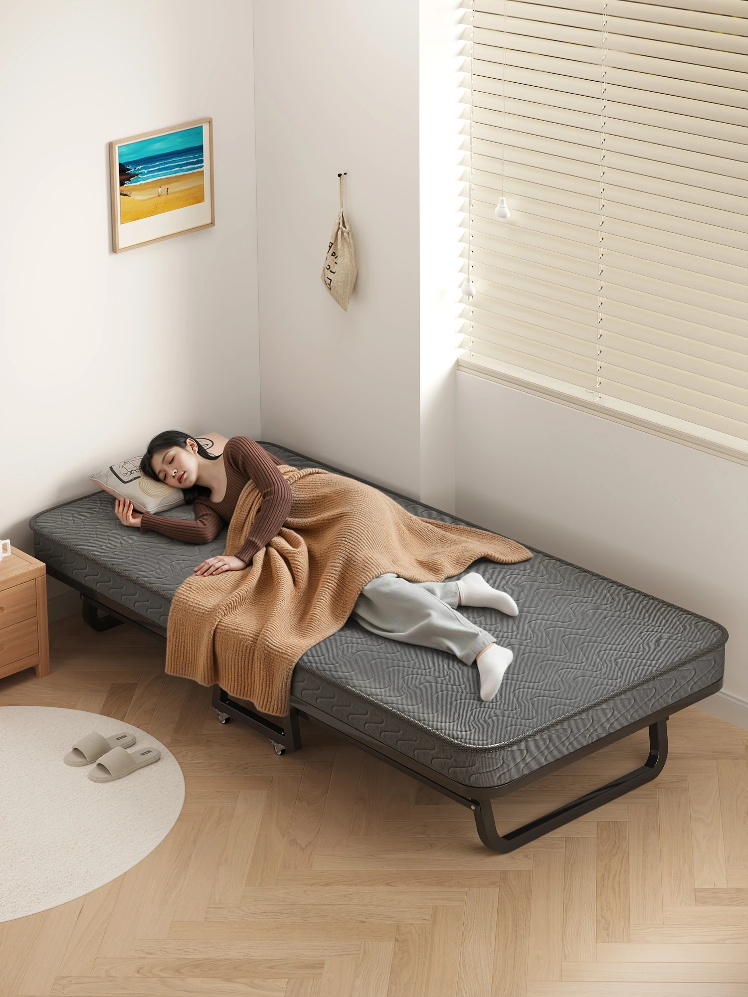 お昼寝に最適!折りたたみシングルベッド - 簡単ポータブル、家庭・オフィス用、成人のお昼寝に最適な神器!病院での付き添いやキャンプにも使える便利な一品。