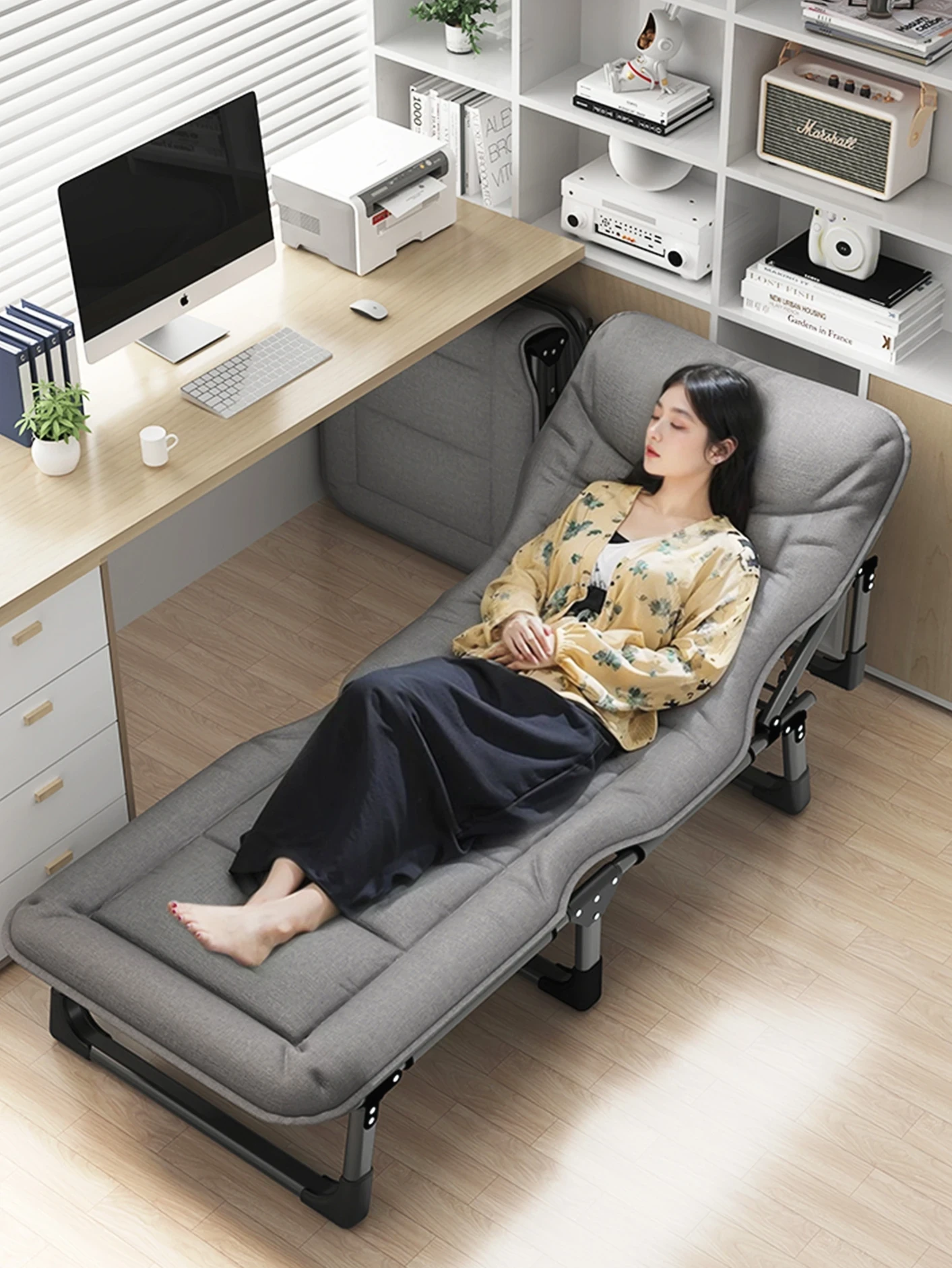 お昼寝に最適!折りたたみ式ポータブルシングルベッド - オフィスでの昼休みにぴったりな簡易ベッド。大人のための快適なお昼寝神器、行軍ベッドとしても使用可能!