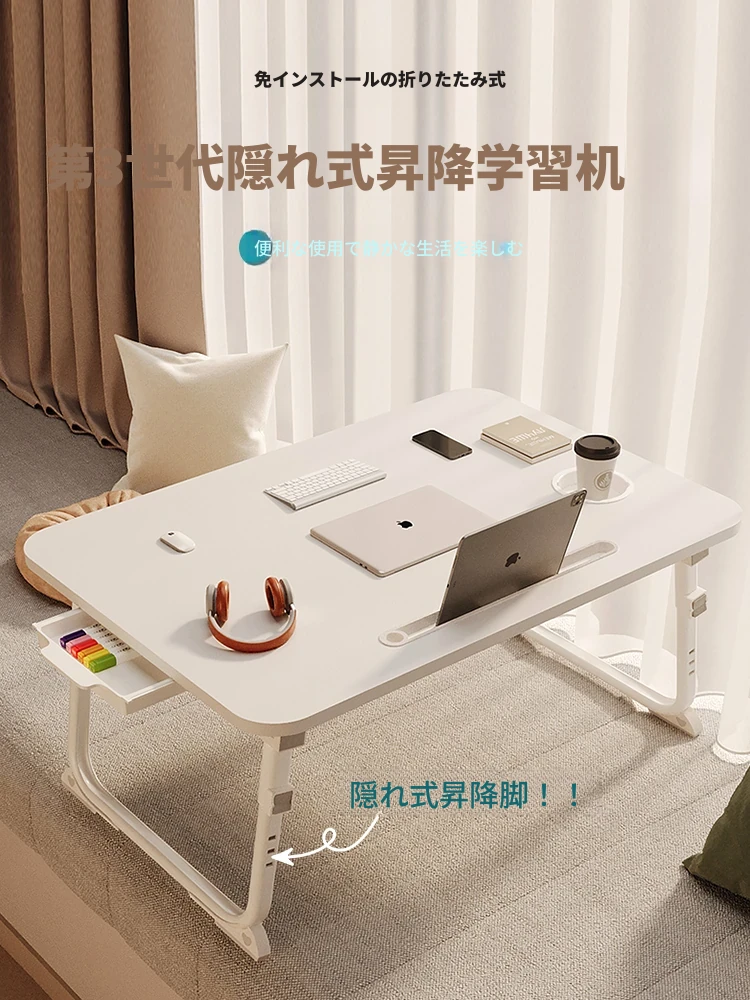折りたたみ式ベッドサイドテーブル|学生に最適な省スペースデスク|快適なリモート学習や作業に!|コンパクトで持ち運び簡単なデザイン|おしゃれな書き物台、宿舎や自宅にぴったり!