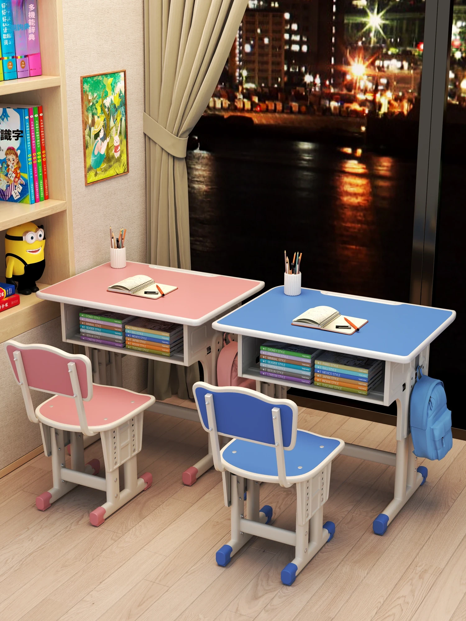 学校仕様の子供用学習デスク!小学生向け、家庭用の昇降可能な書き机セット。寝室にぴったりな快適な机椅子セットで、学習をもっと楽しく!