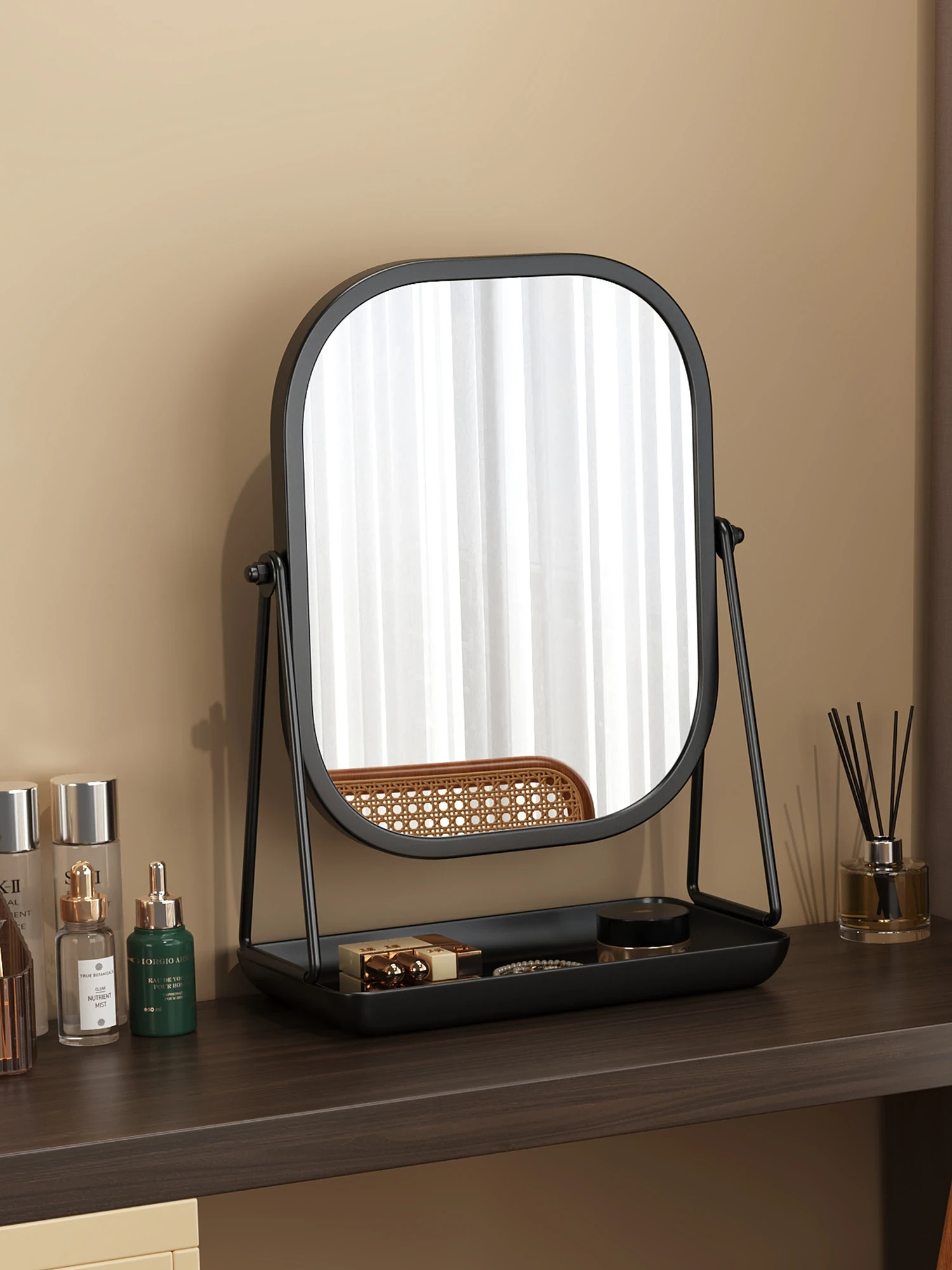ラグジュアリーな回転式化粧鏡 - デスクトップ用のスタイリッシュな鏡、収納付きベースで美しさを引き立てる大サイズのドレッサーミラー!自宅でのビューティータイムを格上げ!