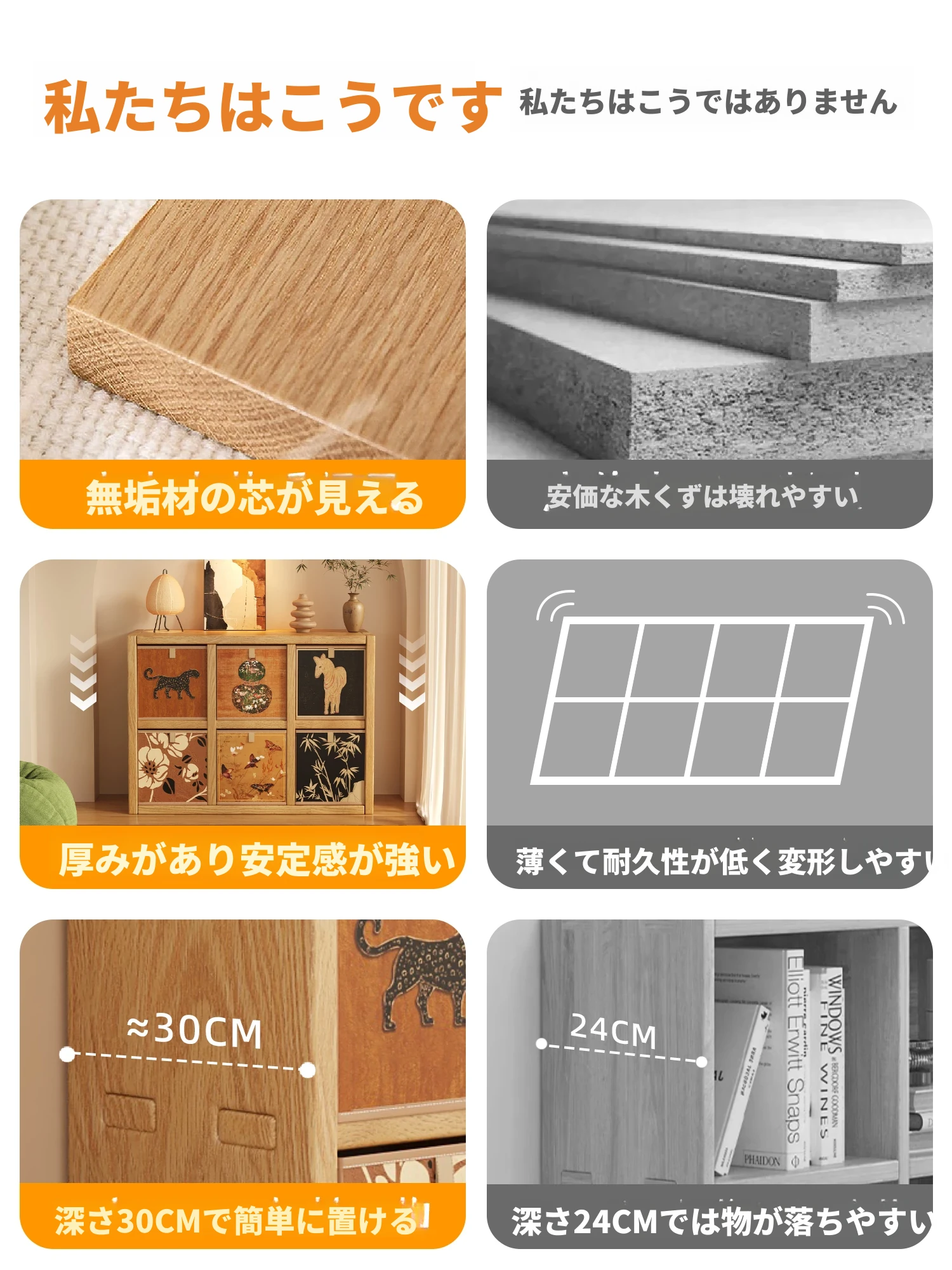 天然木材使用のスタイリッシュなグリッド書棚!フロアスタンドで、壁に寄せて設置可能。リビングや窓辺にぴったりな収納棚。自由に組み合わせて、あなたの空間を素敵に演出しましょう!