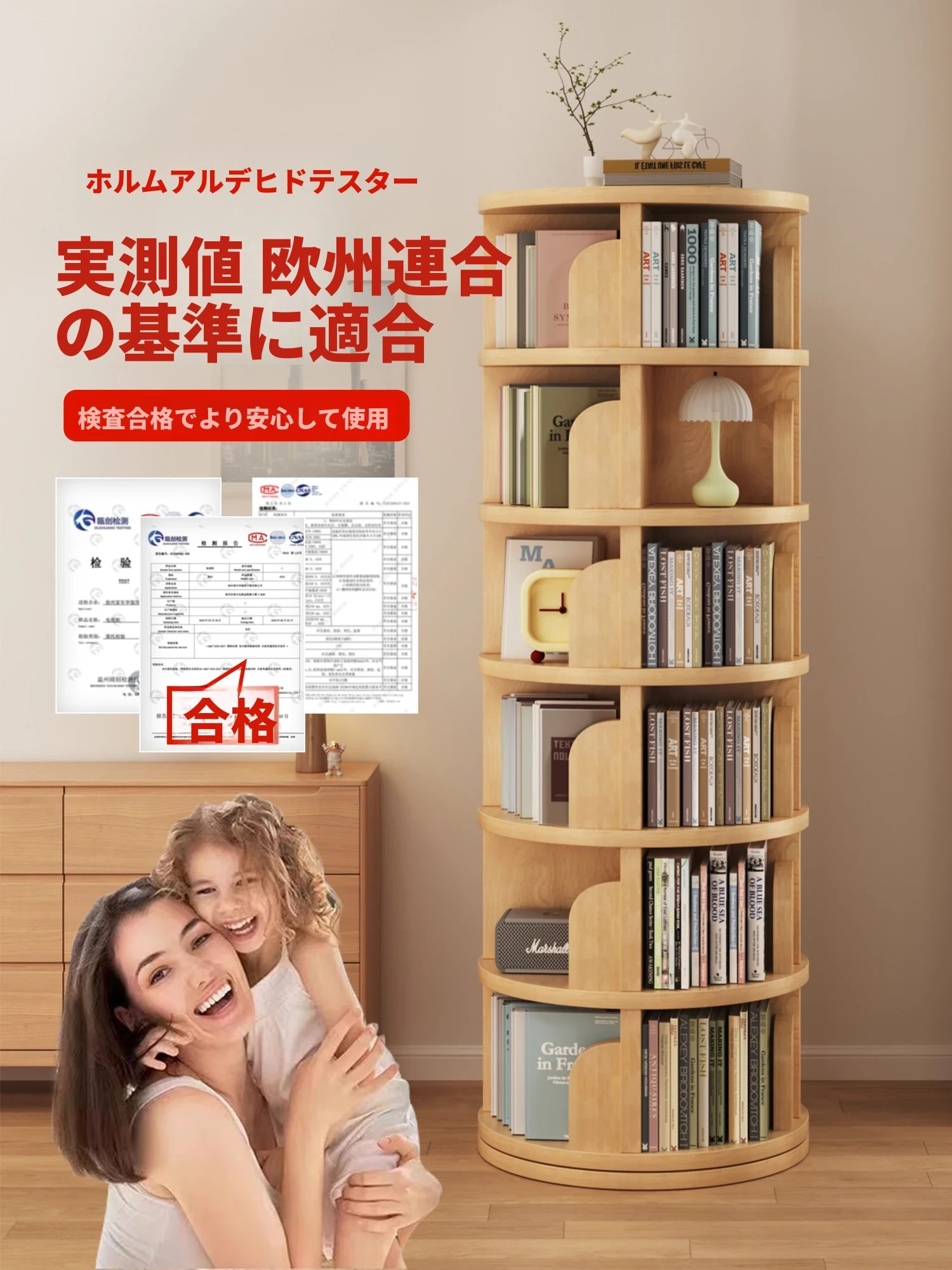 360°回転可能な全木製の多層フロア書棚 - 家庭用、書斎に最適!簡単に使える子供用収納ラックで、すっきり整理整頓。おしゃれで実用的なデザインで、お部屋がもっと快適に!