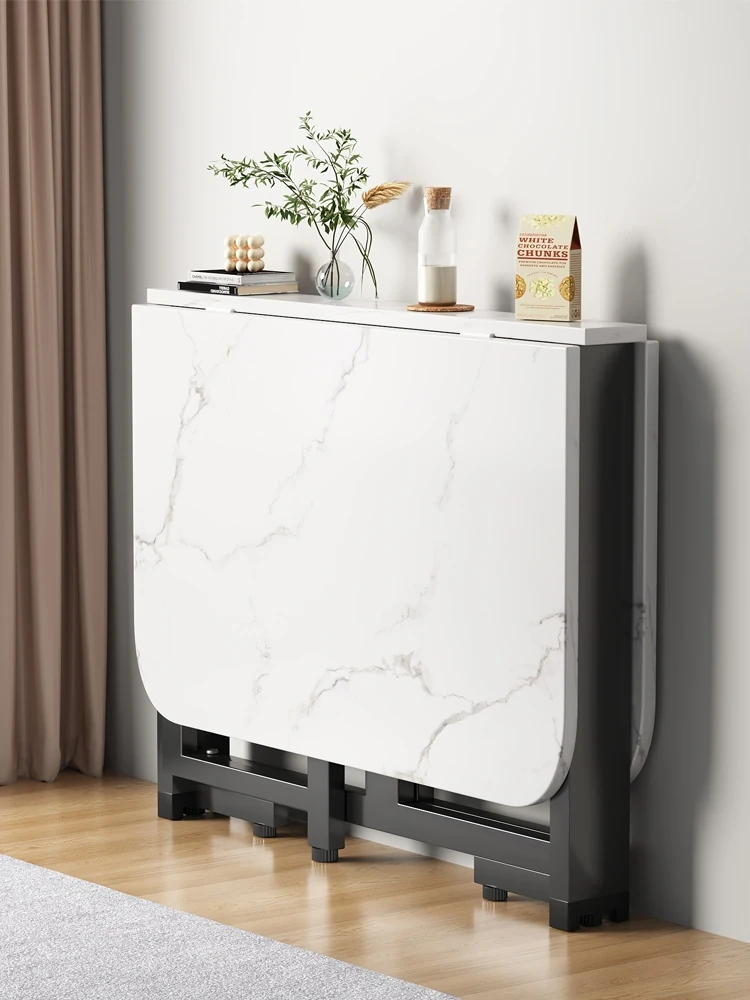 モダンシンプルな折りたたみ式ダイニングテーブル - 小型住宅向け、リビングルームでも使える移動可能な長方形テーブル。食事を楽しく、スペースを有効活用!
